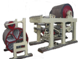 小型造紙機(jī)齒輪傳動(dòng),由齒輪傳動(dòng)或由毛布帶動(dòng)若干個(gè)烘缸為一組,若干組烘缸構(gòu)成干燥部。各組烘缸的線速度可以分別調(diào)整,保持各組烘缸之間微量速差以補(bǔ)償紙頁(yè)在干燥過程中的收縮。出干燥部的紙頁(yè)干度一般在92~94%左右。在干燥部末端,一般配有冷缸,使水氣能在冷缸面上凝聚。冷凝水可以濕潤(rùn)紙頁(yè)表面以利于在整飾中得到較佳的表面平滑度。烘缸直徑以1.5m的效果。單面光紙可以通過采用高硬度、高光潔度缸面的大直徑烘缸而得到較高的單面光澤度,大直徑烘缸直徑一般采用3~7.5m。